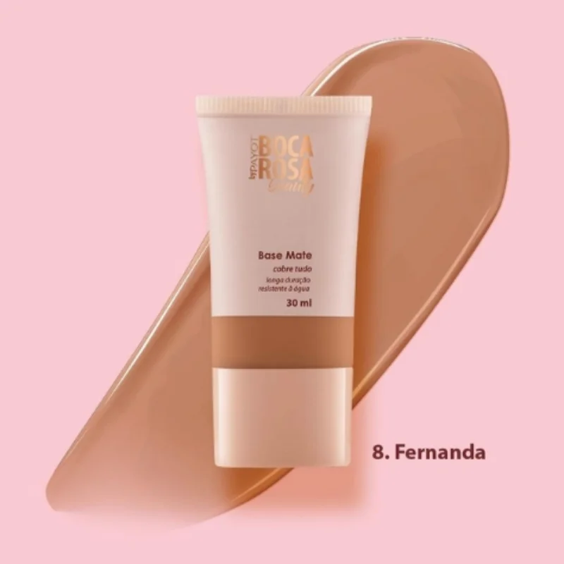 A Base Mate Boca Rosa Beauty by Payot é uma base de alta cobertura que proporciona um acabamento mate sem deixar a pele ressecada ou craquelada. Desliza facilmente na pele e proporciona uma cobertura perfeita.