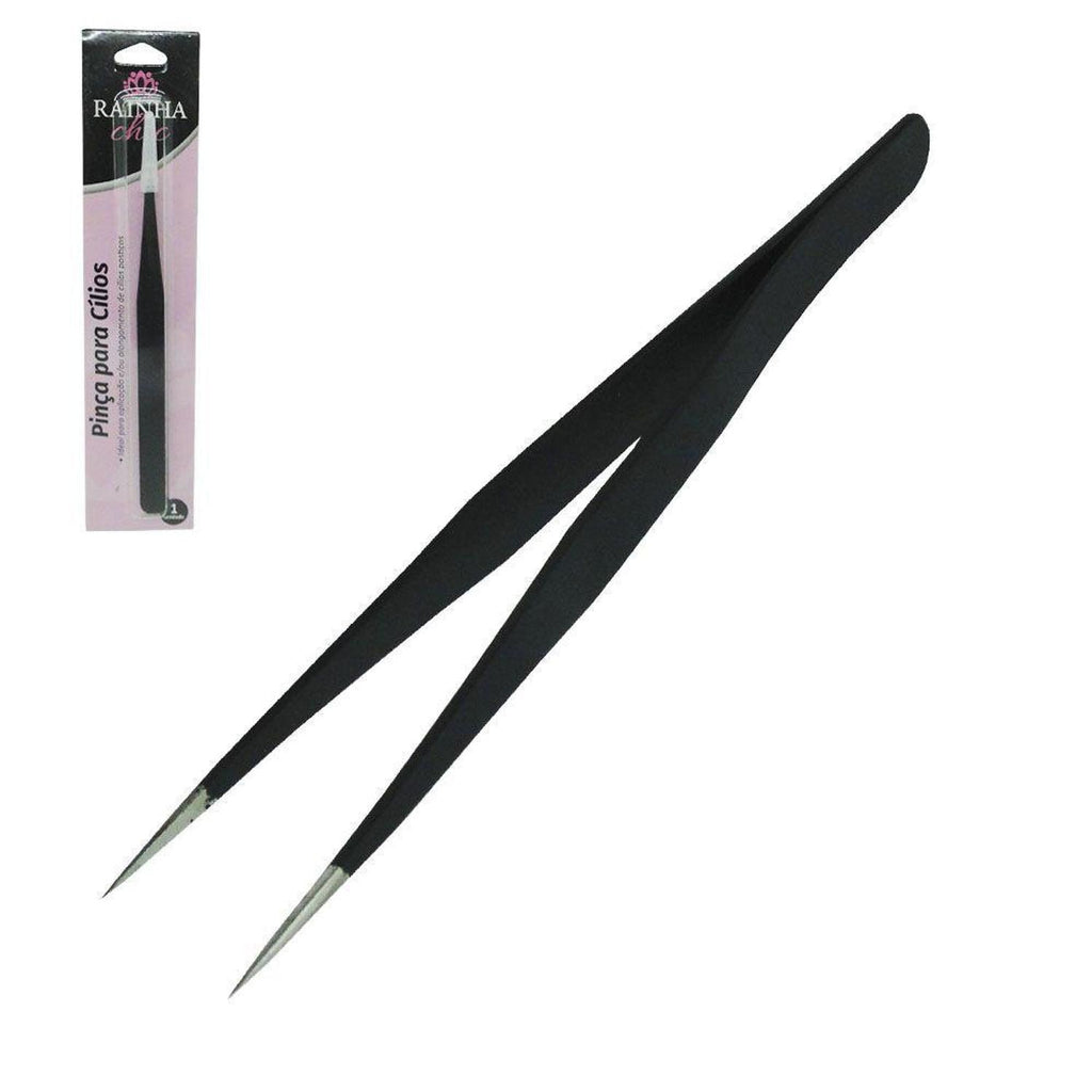A pinça para cílios Rainha Chic é uma ferramenta de alta precisão em aço inoxidável, ideal para aplicação de cílios postiços, tufos e alongamento fio a fio.